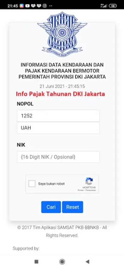 It is hoped that this application can help the public know the amount of vehicle tax that must be paid