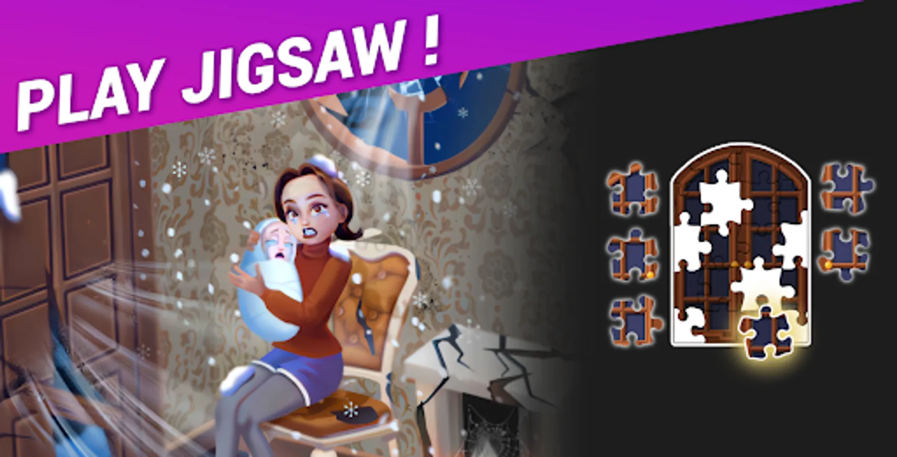 • Mysterious storyline. Complete jigsaw puzzles, earn shards, redecorate rooms to help people.