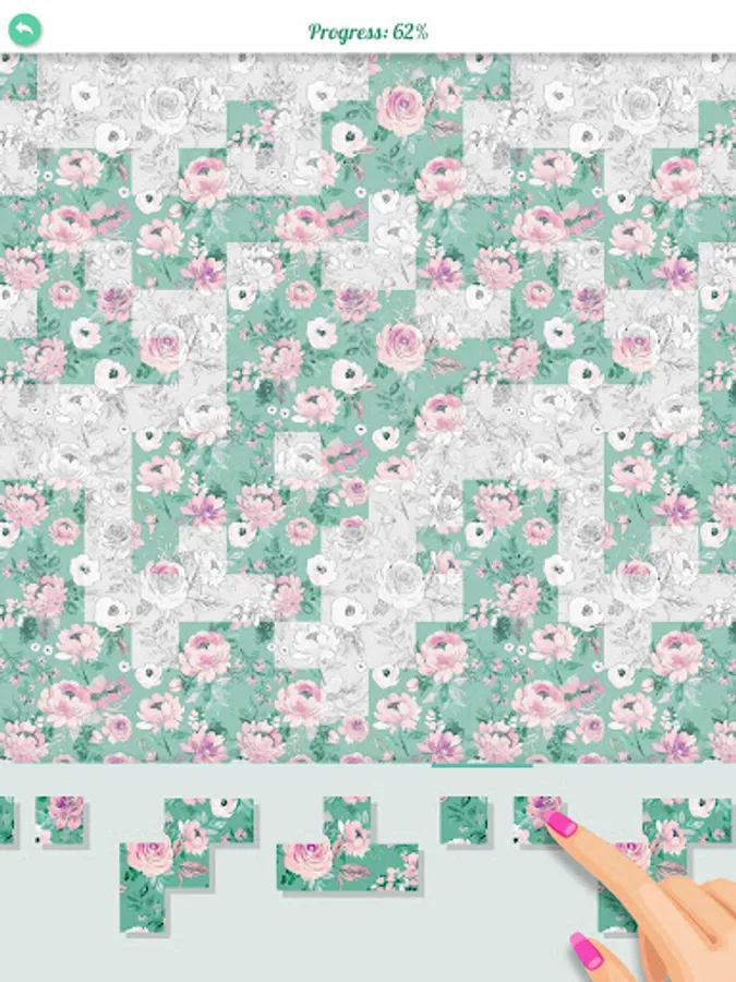 In Patterns Puzzle, your goal is to complete the repeating patterned picture so that it becomes colored.