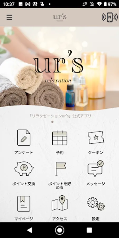 With this app, you can receive the latest information on relaxation urs and use useful functions.