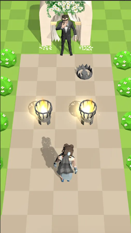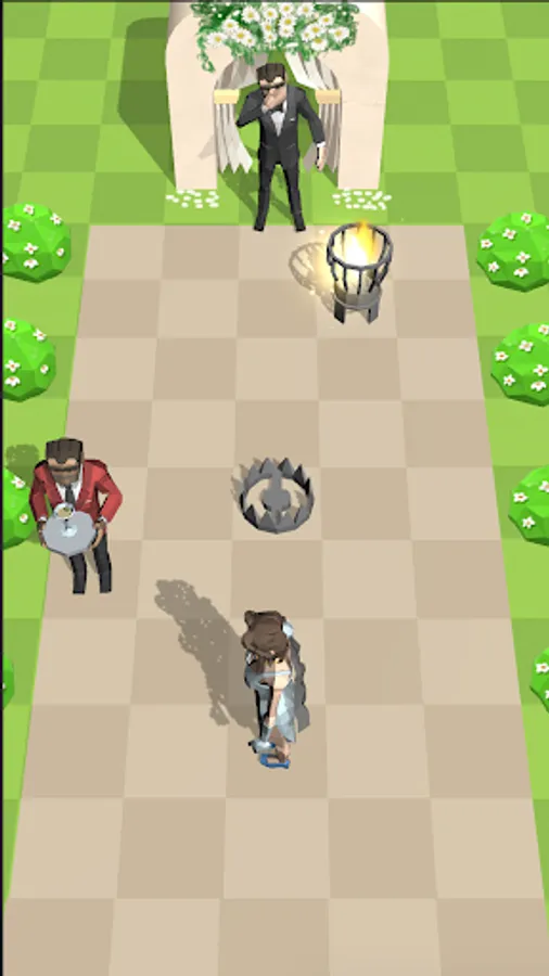 Solve the exciting puzzle and guide the bride avoiding all the obstacles to reach the stage. Help her in getting married!