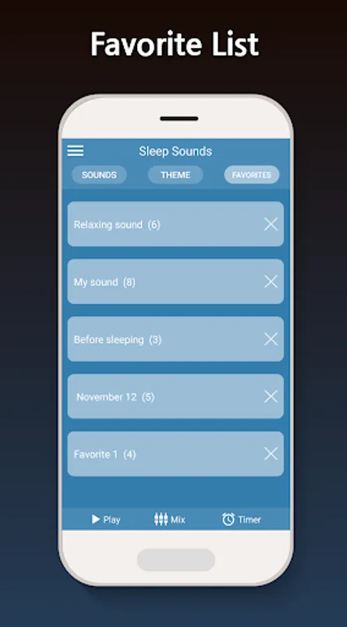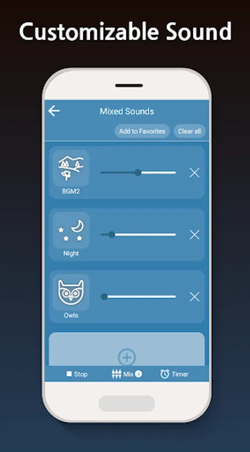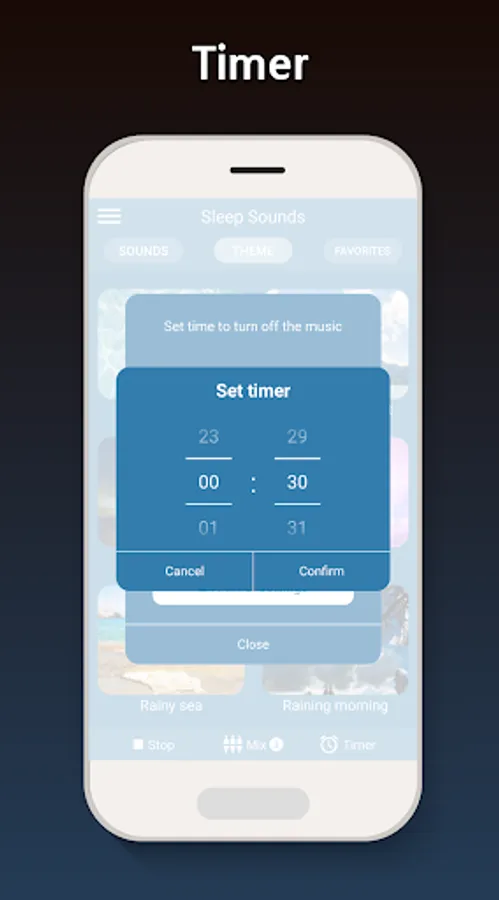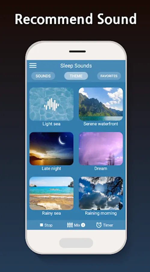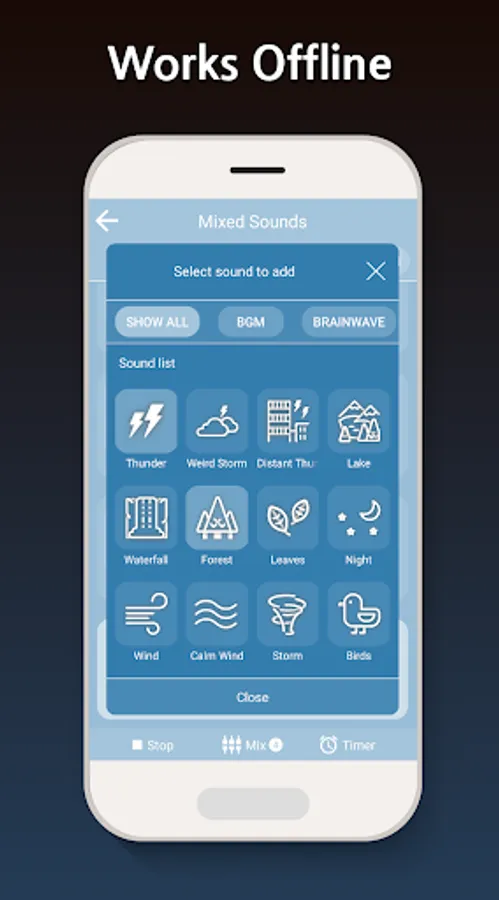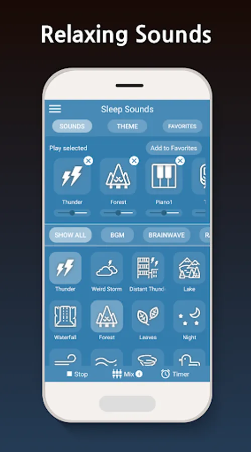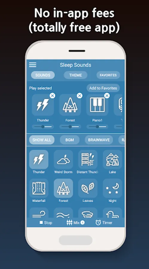 You can set the timer before sleep to stop sounds. You can easily mix sounds, adjust volume, save and listen to it whenever you want.