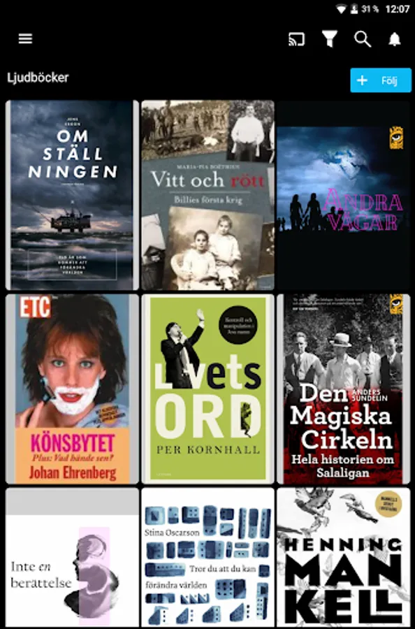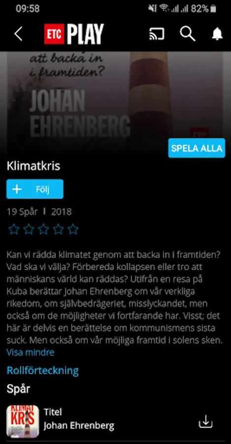 At ETC Play you will also find a wide selection of audio books with current professional books on politics and climate, biographies, reportage as well as fiction and poetry.