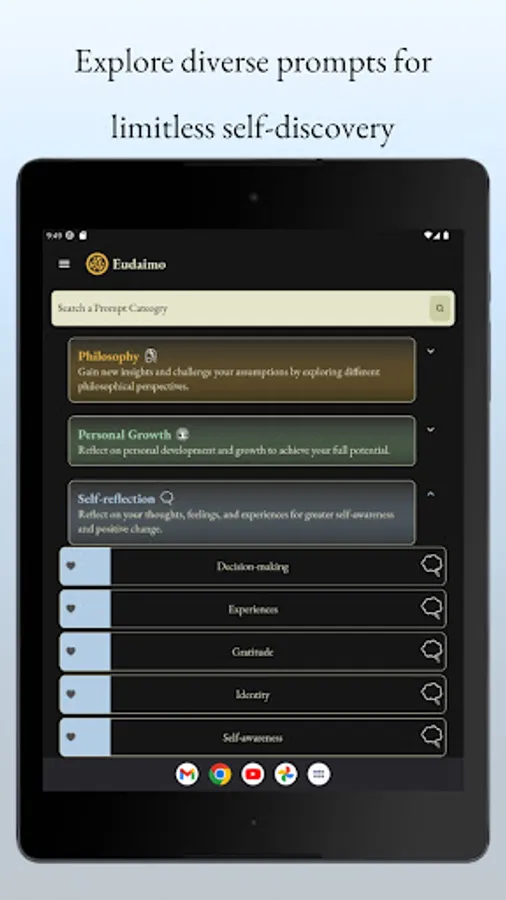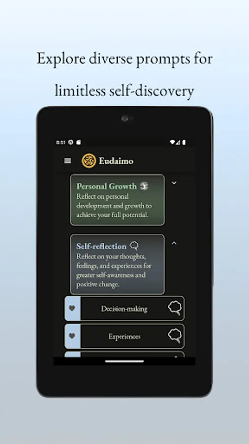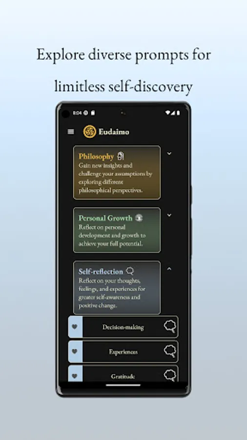 Download Eudaimo now and unlock a world of self-discovery, personal growth, and fulfillment. Begin your transformative journey today and embrace a life of purpose and authenticity.