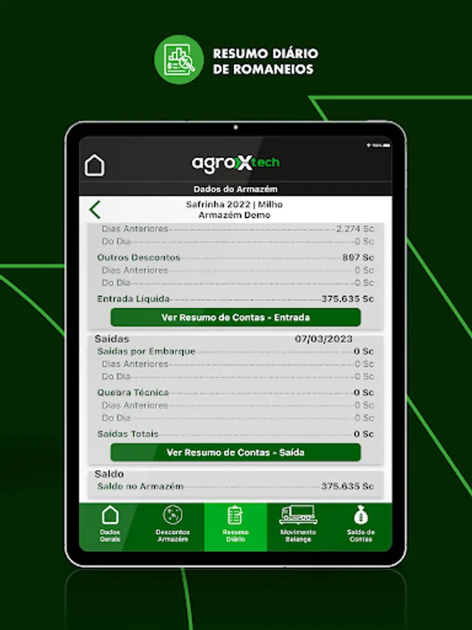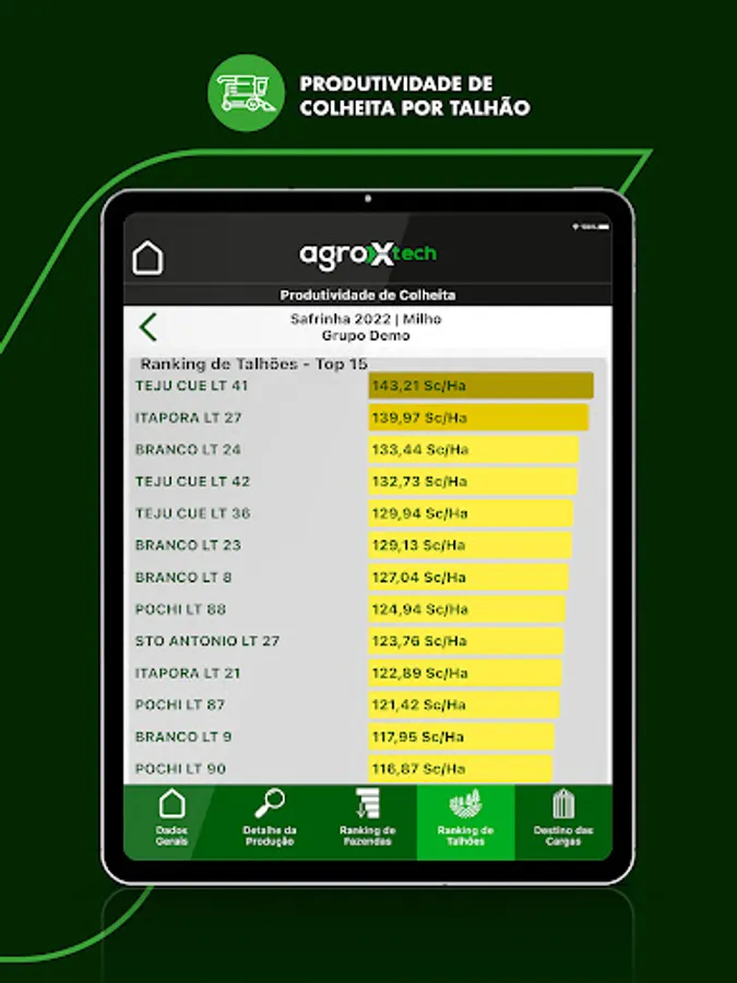 Have access to all incoming and outgoing movements on the warehouse scale and reprint weighing lists at any time, with a photo of the truck and driver data. Monitor productivity by farm and field in real time as product enters the warehouse.