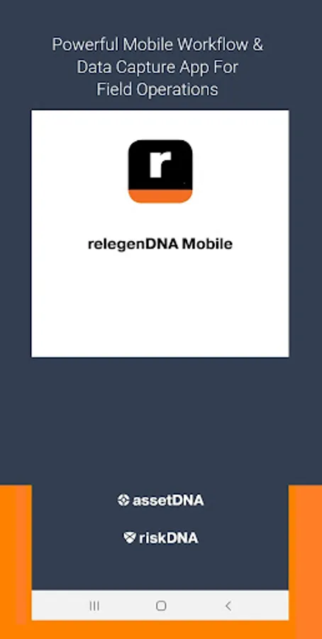 relegenDNA Mobile is designed to work with Relegen's assetDNA (Enterprise Asset Intelligence) and riskDNA (Enterprise Risk Intelligence) cloud applications. To obtain a license and for more information, contact your IT department or the App Developer.