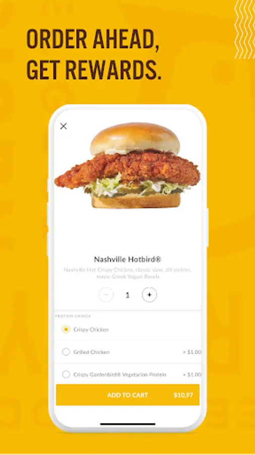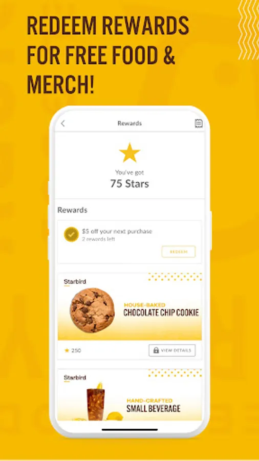 Welcome to the Starbird app! We are serving up super-premium fast food including positively delicious chicken sandwiches, salads, tenders and wings. Our perfectly crispy chicken is never treated with antibiotics, all natural, and 100% gluten friendly. By downloading our app and joining our loyalty program, you will be able to order ahead for pickup or delivery, earn points on every transaction, and redeem rewards for free food & merch! You'll earn 10 stars for every $1 spent, and after your first purchase you'll get $10 off your next visit! Questions or Comments? We'd love to hear from you - contact us at www.starbirdchicken.com/contact. You can also find us on social media (@starbirdchicken) or visit our website at starbirdchicken.com.
