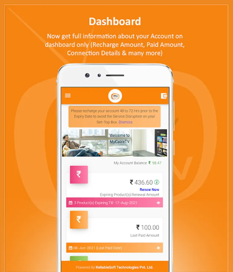 ► Accessibility – Subscriber can access his account 24*7 through MyCableTV App.