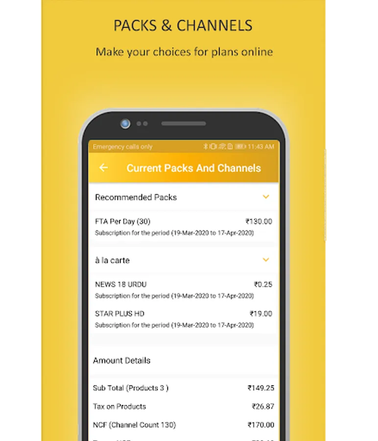 · Get Info on your fingertips – Easily get your account information like Expiring products, Recommended Recharge amount, Subscribed packs, Transaction history and Service request updates etc.