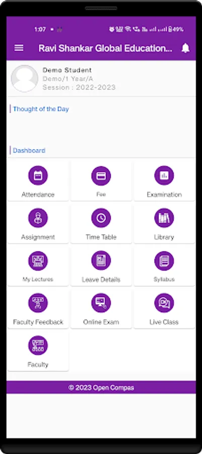 Ravi Shankar Global Education College App has been designed with an easy and user-friendly interface. The app has been designed keeping in mind the needs of a student and teacher. It has been developed to provide a complete solution for managing a school.