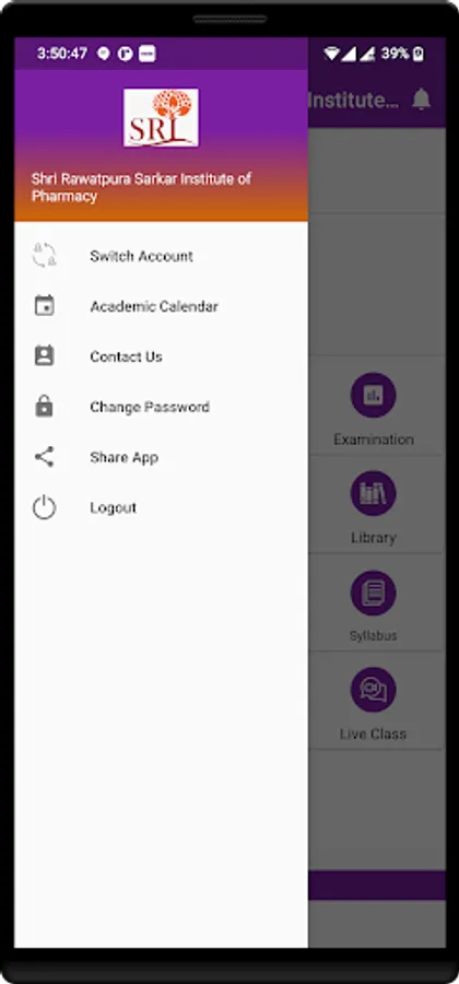 Shri Rawatpura Sarkar Institute of Pharmacy App has been designed with an easy and user-friendly interface. The app has been designed keeping in mind the needs of a student and teacher. It has been developed to provide a complete solution for managing a college.