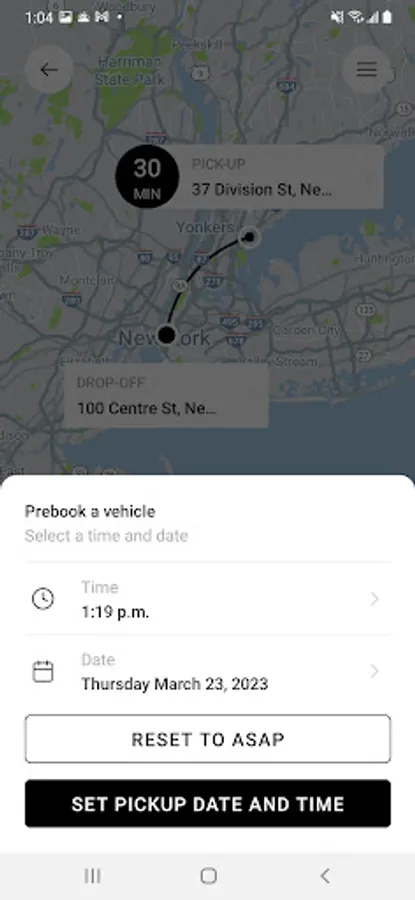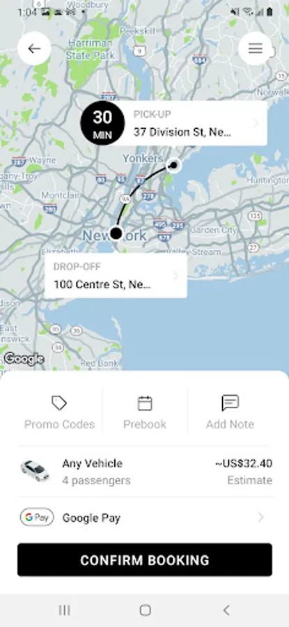 • Enter your destination address (this allows us to provide an estimated fare amount)