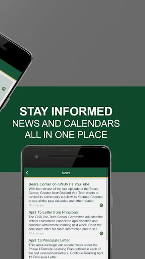 With the Greater New Bedford Vocational District mobile app, your school district comes alive with the touch of a button. Easily navigate through current news and events or check out the latest updates with social media. Quickly retrieve contact information, sporting scores, lunch menus, and more! It’s your school district available at your fingertips.