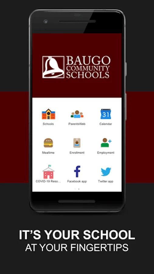 With the Baugo Community Schools mobile app, your school district comes alive with the touch of a button. Easily navigate through current news and events or check out the latest updates with social media. Quickly retrieve contact information, sporting scores, lunch menus, and more! It’s your school district available at your fingertips.