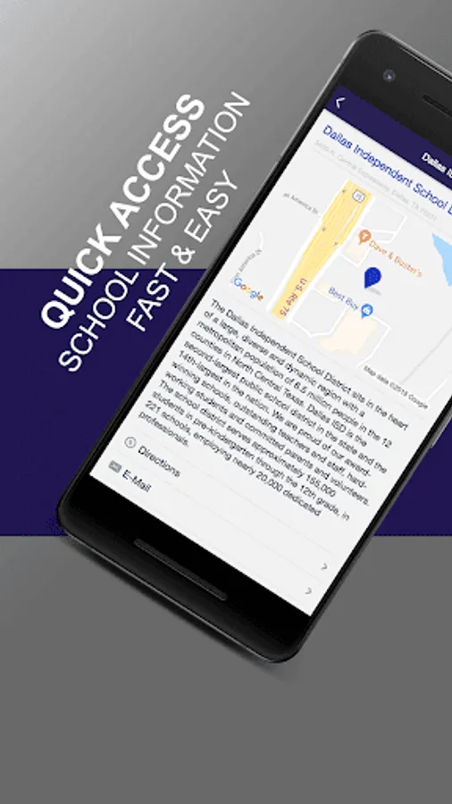 With the Dallas ISD app, your school district comes alive with the touch of a button. Easily navigate through current news and events from the district and your children’s schools or check out the latest updates with social media. Get informational and emergency notifications from your children’s schools and the district. Quickly access your students’ information through PowerSchool, retrieve district contact information, sporting events and scores, lunch menus, and more! It’s your school district available at your fingertips