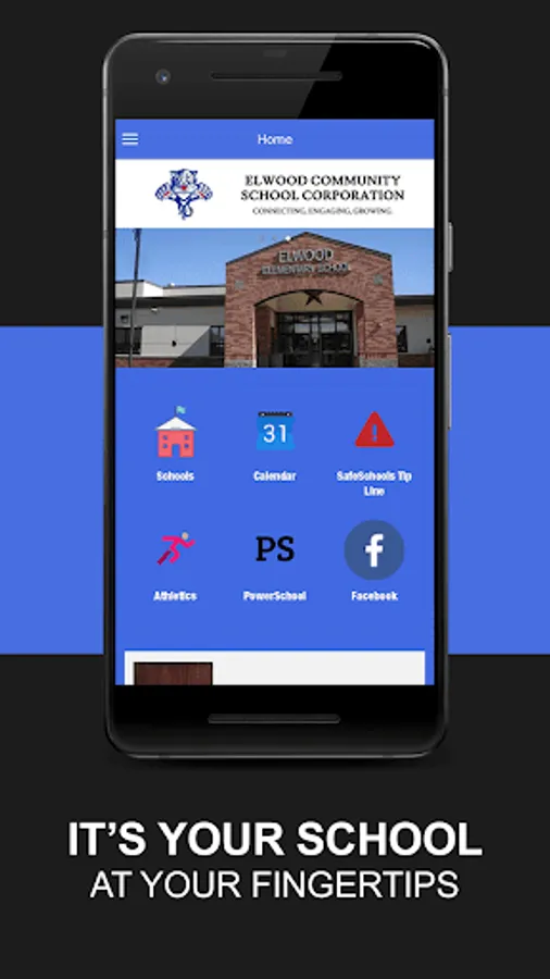 With the Elwood Community School Corp mobile app, your school district comes alive with the touch of a button. Easily navigate through current news and events or check out the latest updates with social media. Quickly retrieve contact information, sporting scores, lunch menus, and more! It’s your school district available at your fingertips.