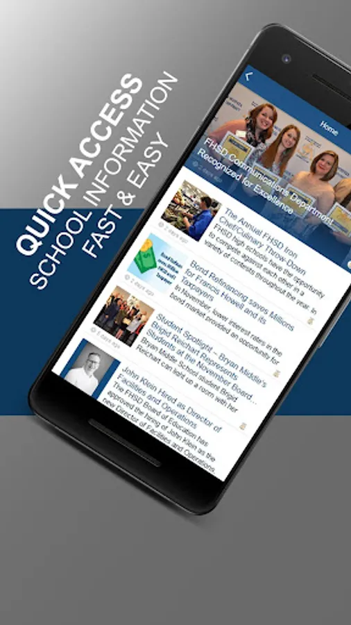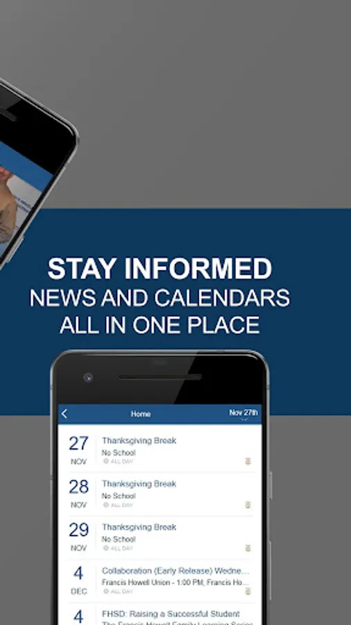 With the Francis Howell Schools mobile app, your school district comes alive with the touch of a button. Easily navigate through current news and events or check out the latest updates with social media like Facebook and Twitter. Quickly retrieve contact information, sporting scores, lunch menus, and more! It’s your school at your fingertips.