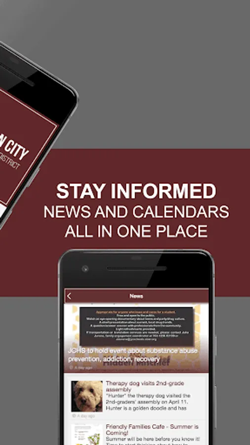 With the Johnson City CSD mobile app, your school district comes alive with the touch of a button. Easily navigate through current news and events or check out the latest updates with social media. Quickly retrieve contact information, sporting scores, lunch menus, and more! It’s your school available at your fingertips.
