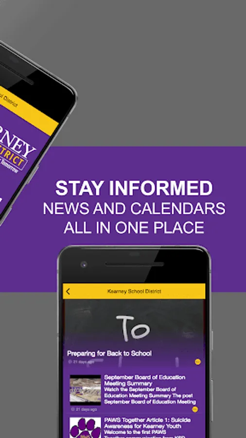 With the Kearney School District mobile app, your school district comes alive with the touch of a button. Easily navigate through current news and events or check out the latest updates with social media. Quickly retrieve contact information, sporting scores, lunch menus, and more! It’s your school district available at your fingertips.