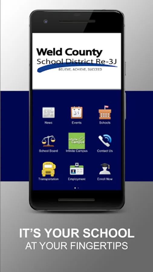 With the Weld RE-3J School District mobile app, your school district comes alive with the touch of a button. Easily navigate through current news and events or check out the latest updates with social media. Quickly retrieve contact information, sporting scores, lunch menus, and more! It’s your school district available at your fingertips.