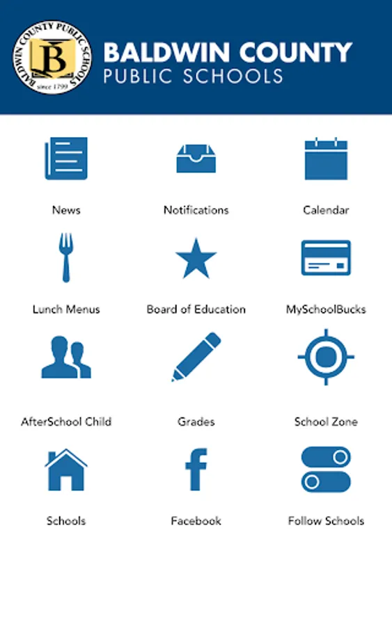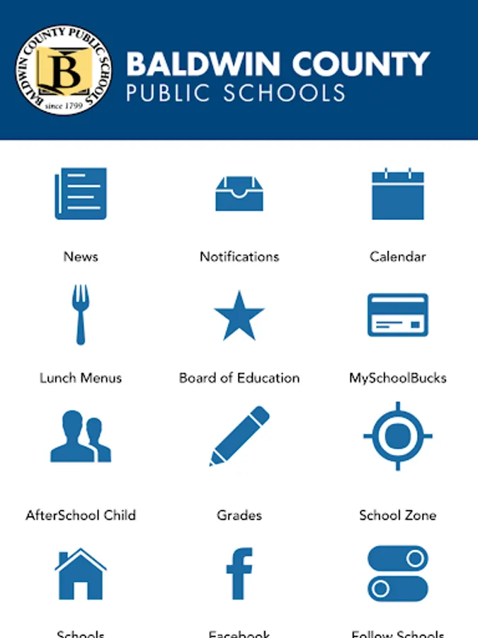 With the Baldwin County mobile app, your school district comes alive with the touch of a button. Easily navigate through current news and events or check out the latest updates with social media like Facebook and Twitter. Quickly retrieve contact information, sporting scores, lunch menus, and more! It’s your school district available at your fingertips.