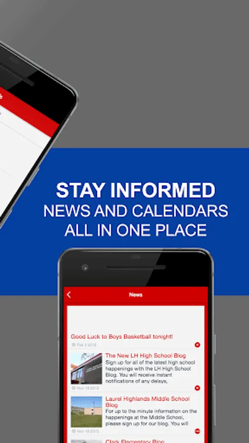 With the Laurel Highlands School District mobile app, your school district comes alive with the touch of a button. Easily navigate through current news and events or check out the latest updates with social media like Facebook and Twitter. Quickly retrieve contact information, sporting scores, lunch menus, and more! It’s your school district available at your fingertips.