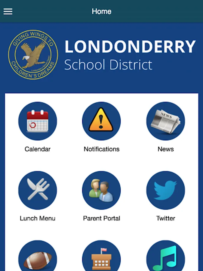 With the Londonderry School District mobile app, your school district comes alive with the touch of a button. Easily navigate through current news and events or check out the latest updates with social media like Facebook and Twitter. Quickly retrieve contact information, sporting scores, lunch menus, and more! It’s your school district available at your fingertips.