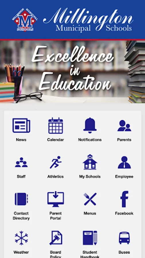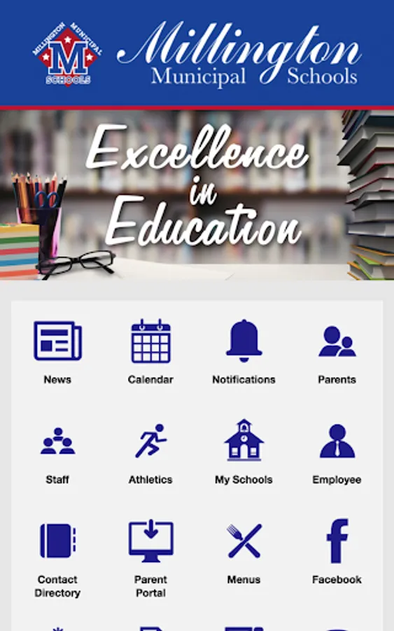 With the Millington Municipal Schools mobile app, your school district comes alive with the touch of a button. Easily navigate through current news and events or check out the latest updates with social media like Facebook and Twitter. Quickly retrieve contact information, sporting scores, lunch menus, and more! It’s your school district available at your fingertips.