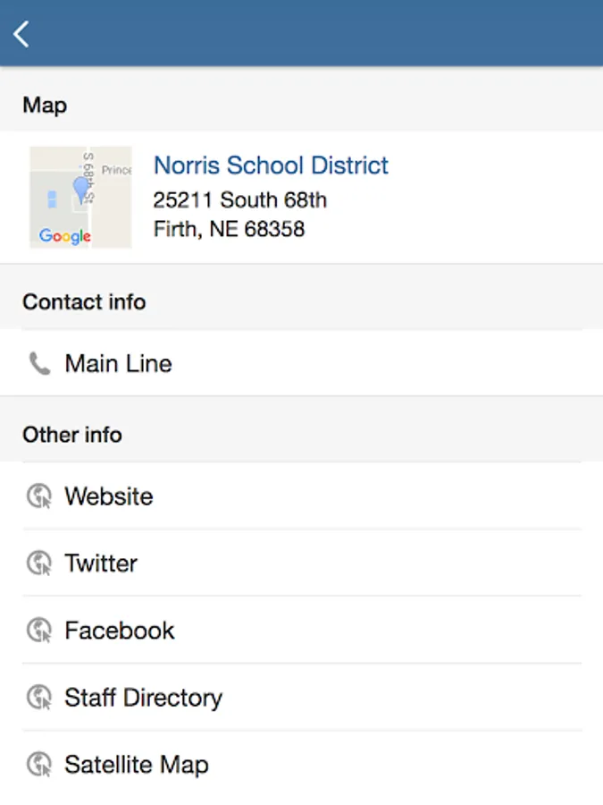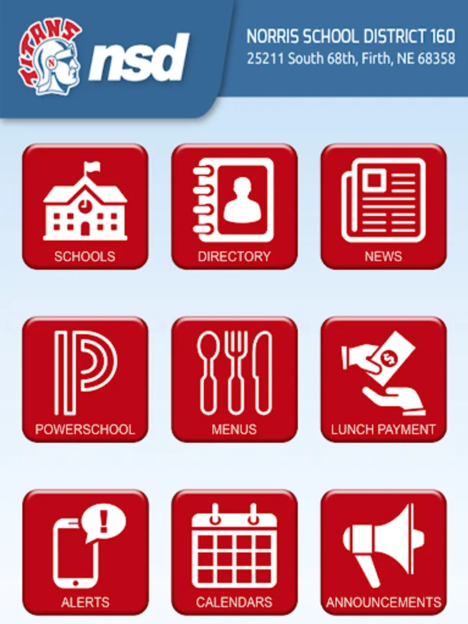 With the Norris School District 160 mobile app, your school district comes alive with the touch of a button. Easily navigate through current news and events or check out the latest updates with social media like Facebook and Twitter. Quickly retrieve contact information, sporting scores, lunch menus, and more! It’s your school district available at your fingertips.