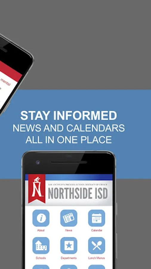 With the Northside Independent School District mobile app, your school district comes alive with the touch of a button. Easily navigate through current news and events or check out the latest updates with social media like Facebook and Twitter. Quickly retrieve contact information, sporting scores, lunch menus, and more! It’s your school district available at your fingertips.
