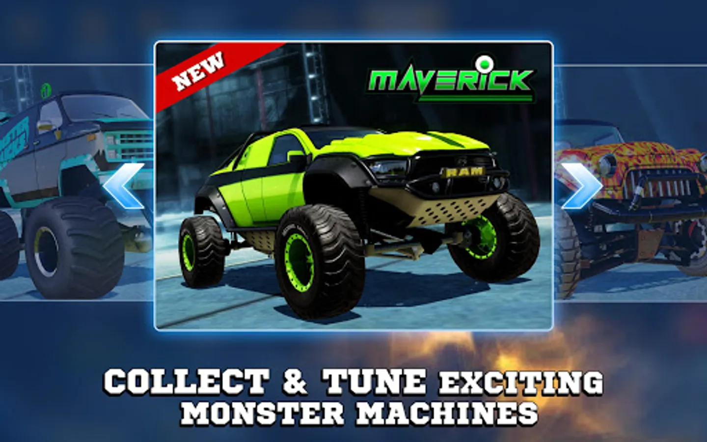 Drive the most loved big trucks – Ace High, Ragin’ Red, El Diablo, and MVP. Lots of monster trucks to race on different Terrain.