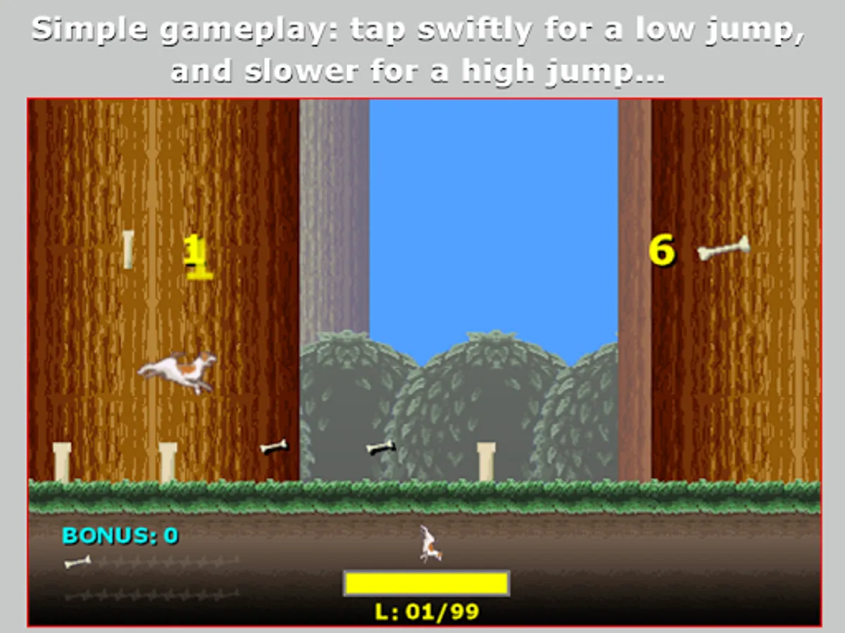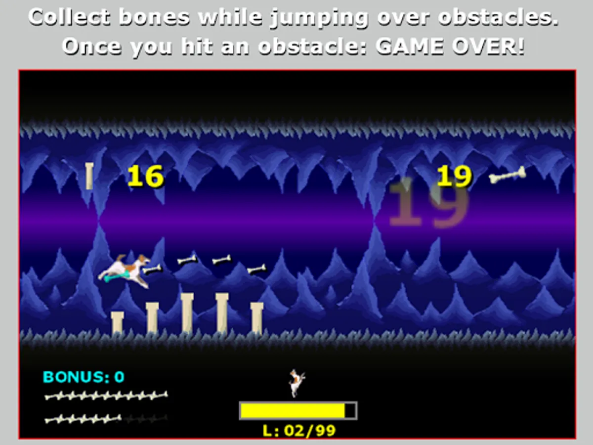 Tap anywhere on the screen to make the running dog jump over the obstacles.