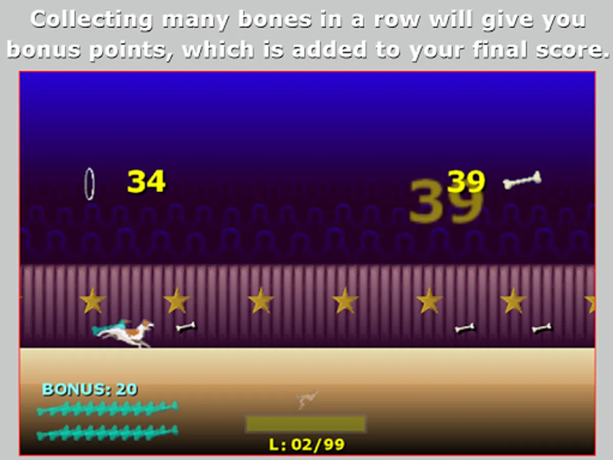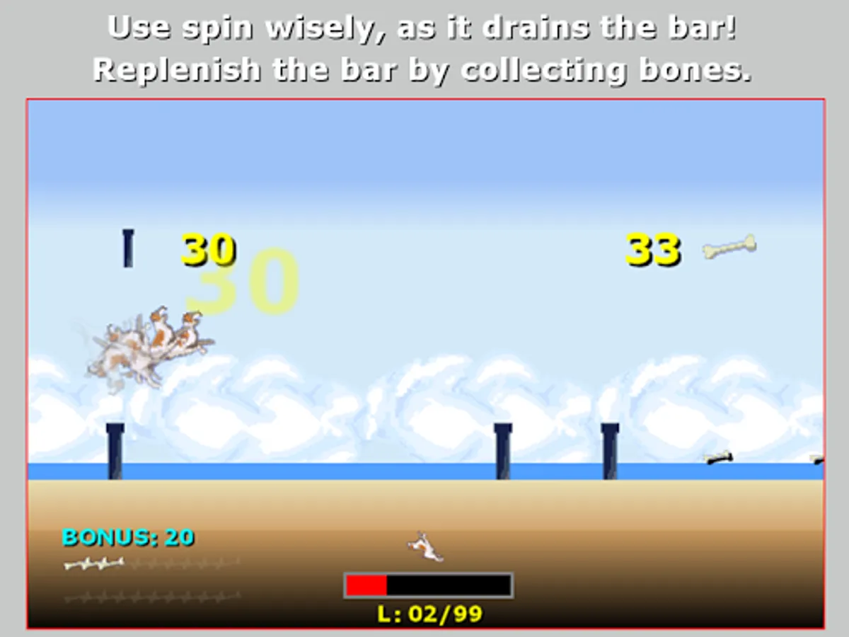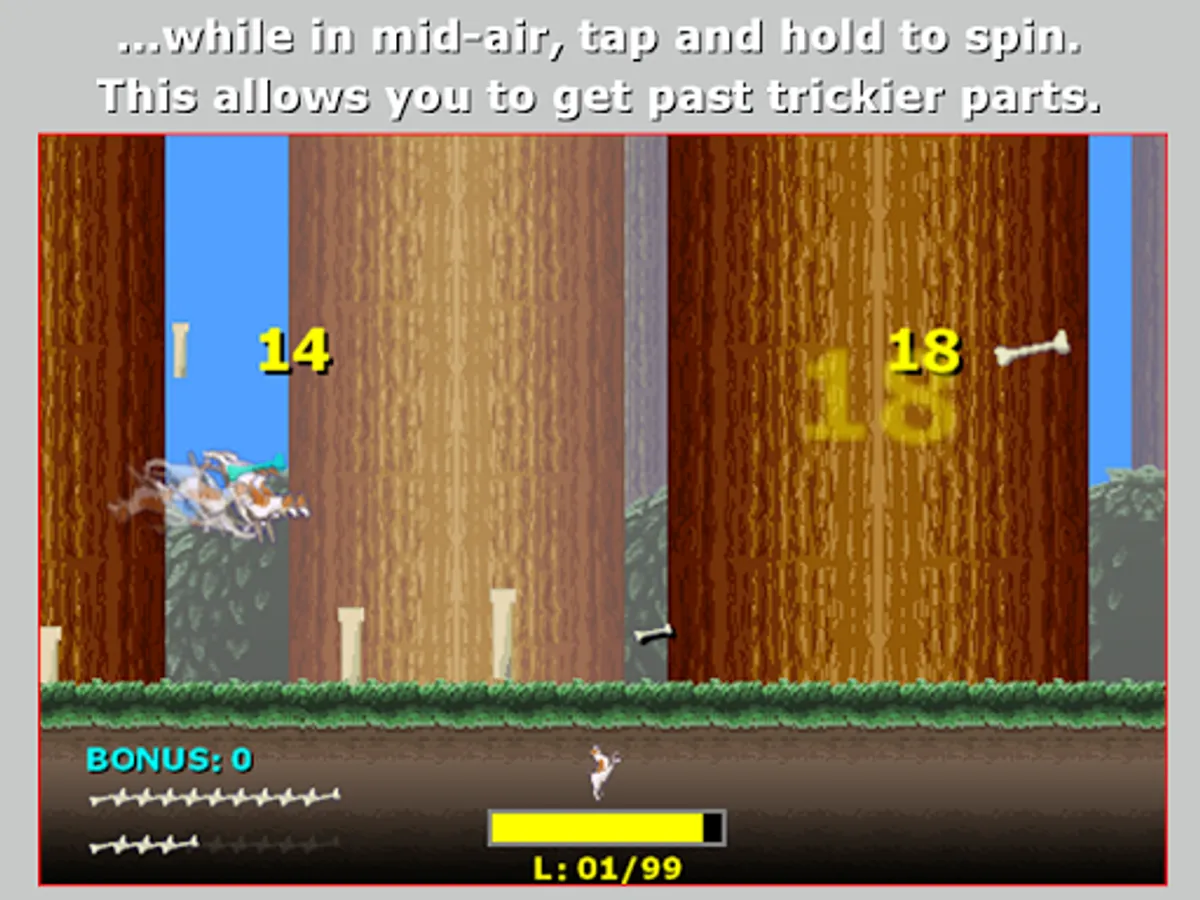 While the dog is jumping, tap the screen again and hold to make the dog spin over tricky obstacles!