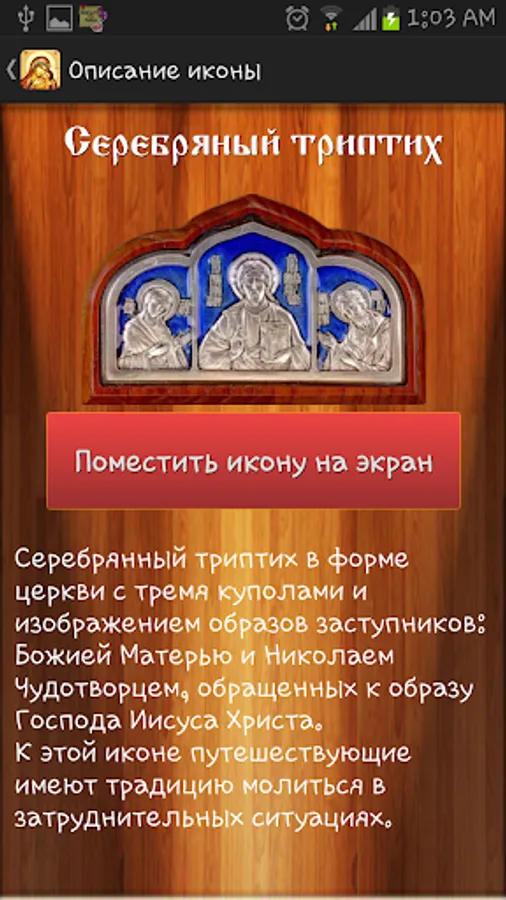 By installing the application with holy images on your cell phone or tablet, you will always have an icon close to your heart with you.