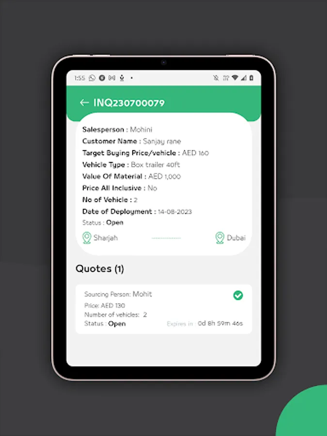With re.life inquiry app, salespersons can effortlessly create inquiries, detailing the requirements and specifications of potential deals. The app then empowers operations team to respond promptly with accurate quotes, ensuring that the entire communication is streamlined and error-free.