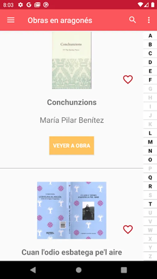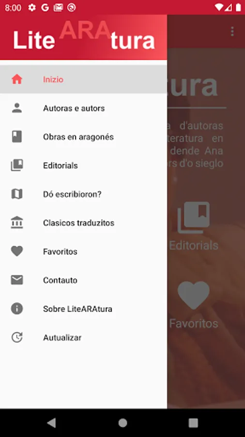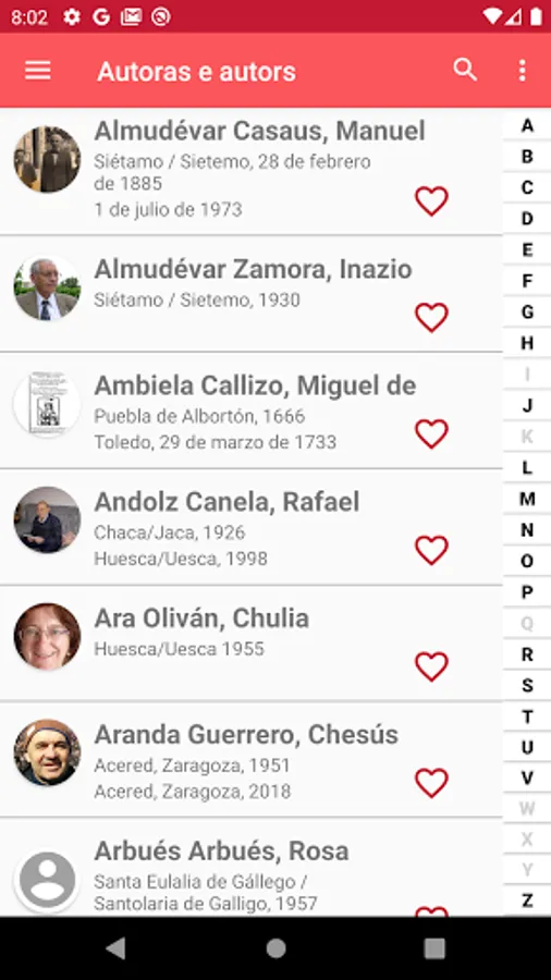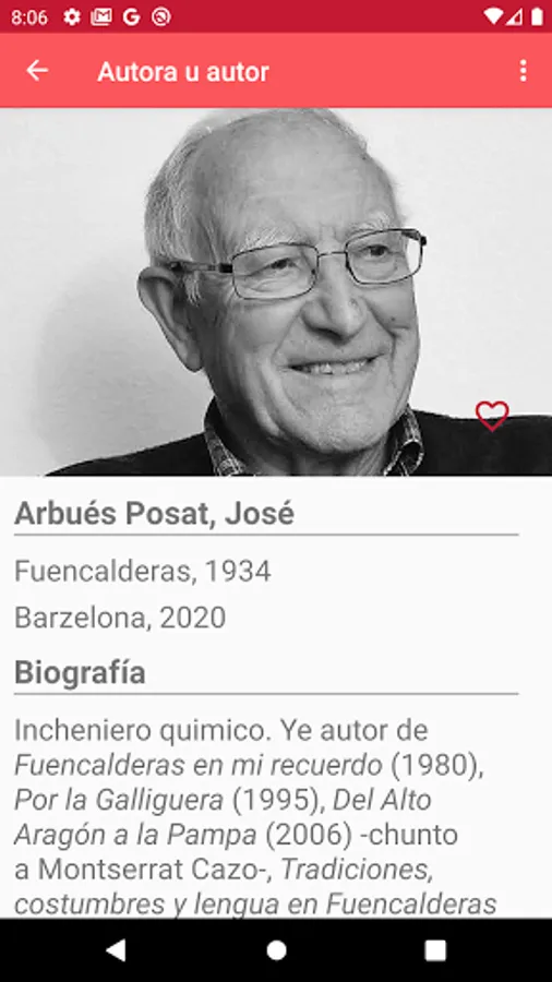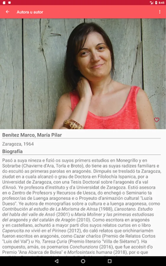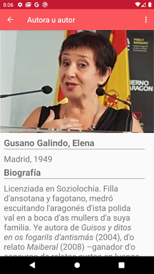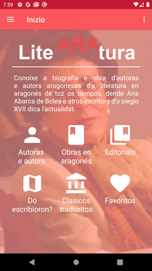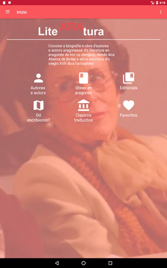 Mobile application for Android that shows the biography and work of Aragonese authors to bring the Aragonese literature of all times closer to the public, from Ana Abarca de Bolea and other writers of the seventeenth century to the present.