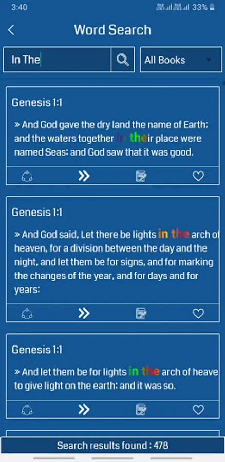 - An swift access to bookmark and back to other chapters with verses.
