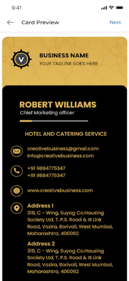 which let users to create, share, store virtual visiting cards (or) Business cards on their