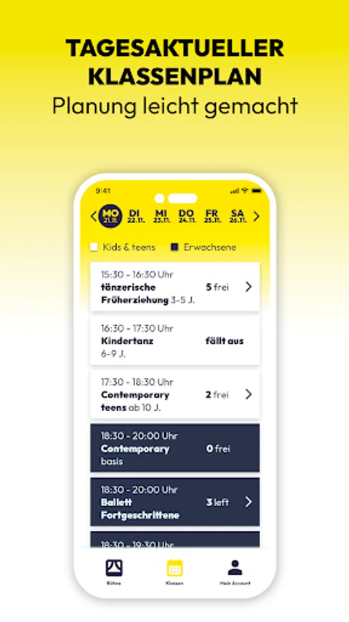 Always stay up to date: Our app gives you a handy overview of our schedule, all upcoming performances and our classes. TanzFaktur members can use the app to book classes, manage their membership and check out the day's timetable.