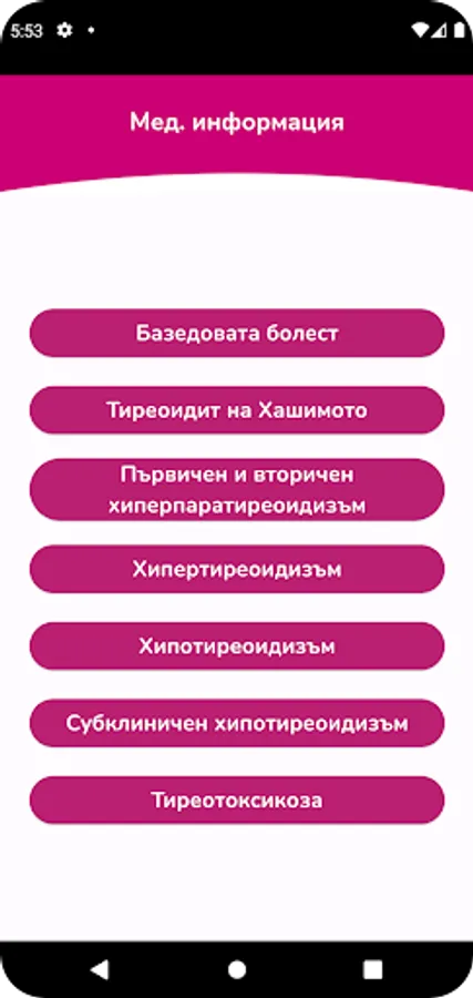 Here you will find a lot of information about the various diseases of the thyroid gland, you will be able to navigate your condition with simple self-tests and find the contacts of laboratories, endocrinologists and medical facilities throughout the country.