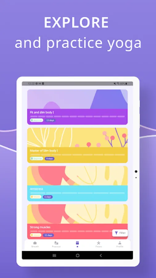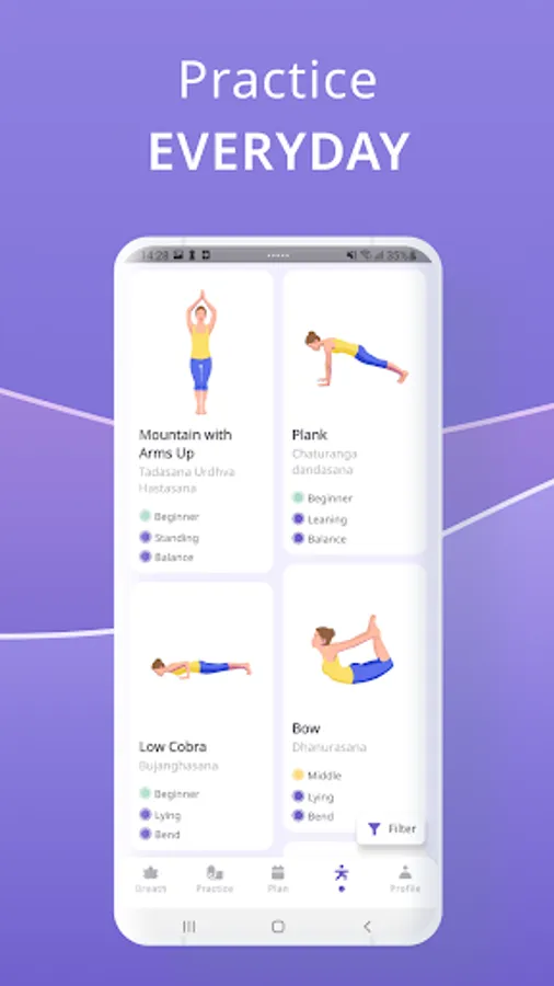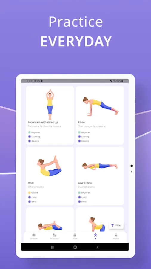 Our yoga app and workout planner help you lose weight, tone your muscles, and find your inner self through a journey into the beautiful world of yoga. Practicing a yoga workout from home, regardless of the level, can positively impact your health from day one!