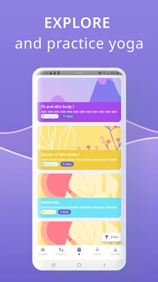 ● Tailor your workout plans to help you achieve your goals, whether you’re looking to practice yoga for weight loss, flexibility, or to tone your muscles.