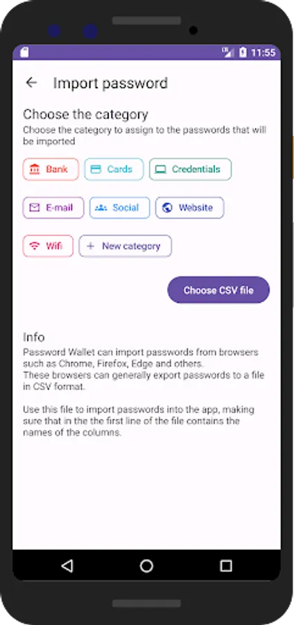 • importing passwords in CSV files from browsers such as Chrome, Firefox, Edge and others