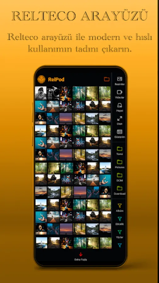 Relpod is a simple but powerful, completely free and ad-free gallery and album application designed by Relteco Inc and with the Relteco interface, with many mode features such as multiple view modes, quick navigation mode, swiper and webview mode.