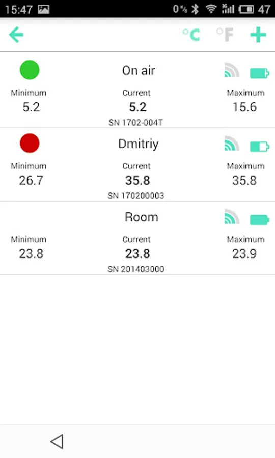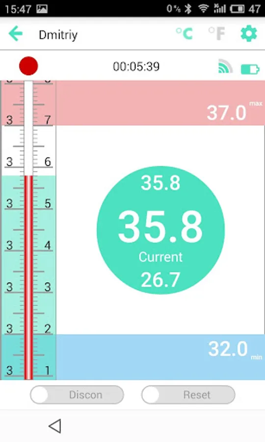 - setting the upper and lower limits and signaling when the temperature is beyond of them. Both sound and vibration alarms are possible. It allows to control temperature of an object in real-time without any necessity to look constantly at a smartphone display;
