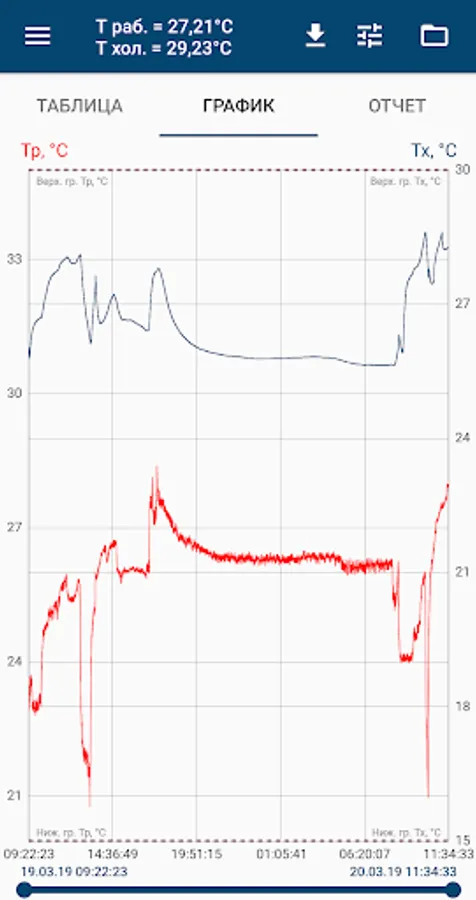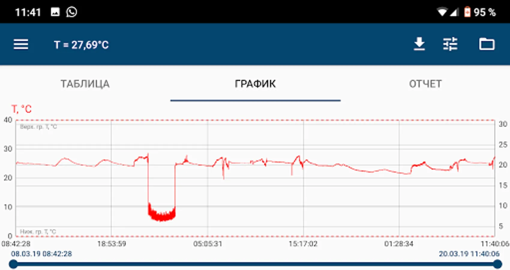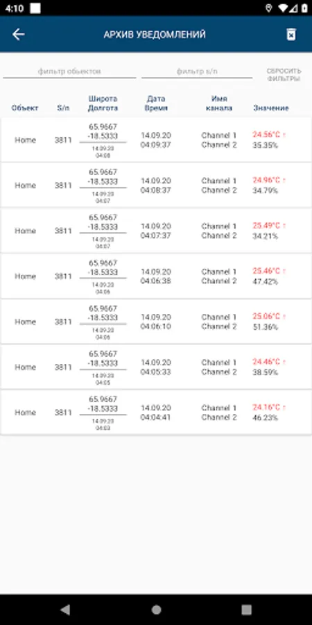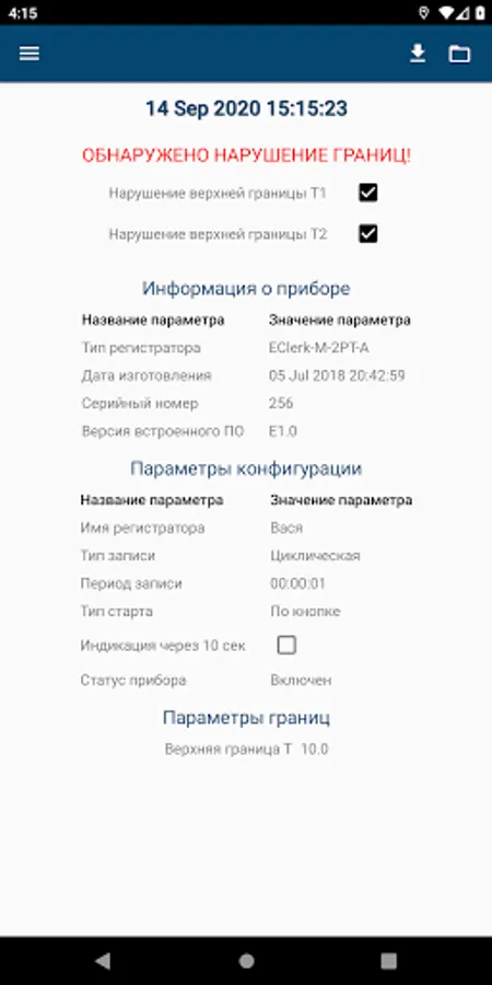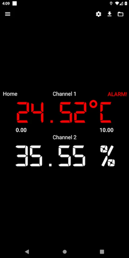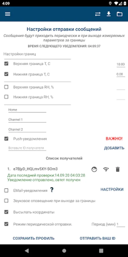 for logger current values and to send Push and/or EMail notifications in case of violation of set boundaries.Additionally you can select a sound alert.