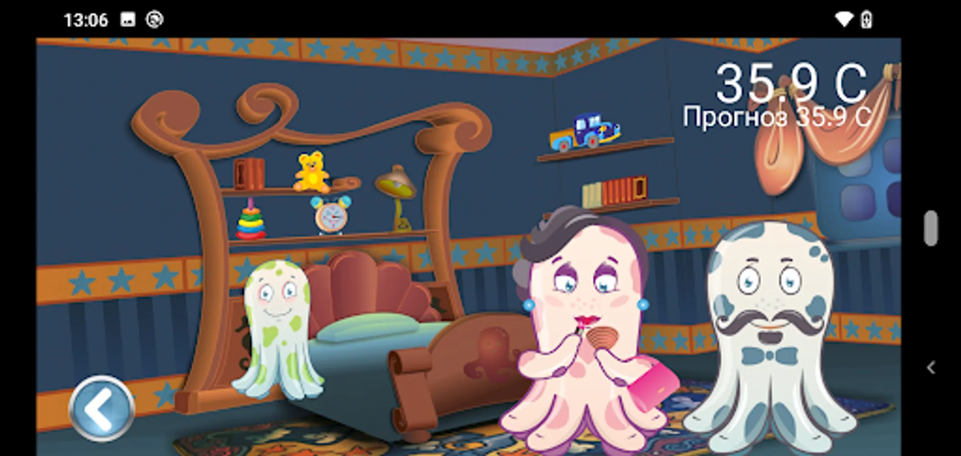 Termosha is the name of a funny little octopus that will help turn a boring and uninteresting measurement process for a child into an exciting experience. The little funny octopus Termosha will show his house, introduce him to mom and dad. The kid will play with Termosha with enthusiasm and will not notice how time flies by!