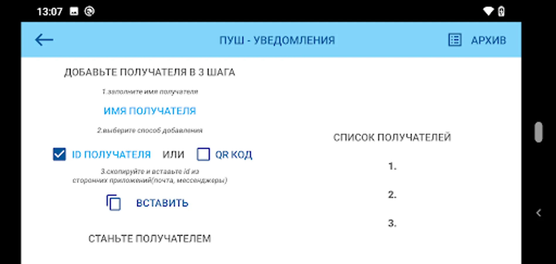 There is a possibility of remote transmission of measured values to three addresses by means of push notifications. Both the sender and the recipients of push notifications maintain an archive of notifications.