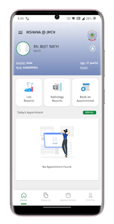 IKSHANA @ JMCH - is yet another first of its kind initiative by Jorhat Medical College And Hospital - for the Ease of patients. Using this App, patients can now manage their appointments - book and view for self and their family members using the same phone number. They can view their Signed Off Laboratory and Radiology reports reducing long wait. The process is very simple and easy to use- Just Sign Up using the Mobile Number registered in Hospital and start viewing Signed Off reports, or Book appointments.