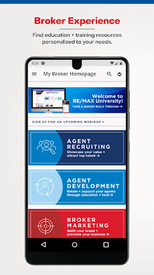 RE/MAX affiliates will login to the app using their MAX/Center credentials to access an educational experience tailored to each region within the RE/MAX network.